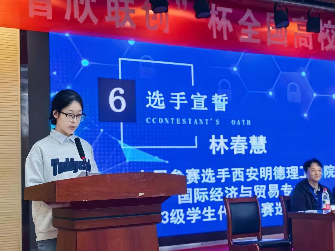 本届大赛技术支持方企业代表辛玉麟先生在讲话中谈到,企业将充分发挥技术优势,为赛事提供全方位支持,助力打造公平、专业的竞技环境。大赛裁判长、山东外国语职业大学商学院院长赵加平教授,2026年国际足联世界杯国际经济与贸易专业学生林春慧先后代表裁判员、参赛学生进行宣誓。