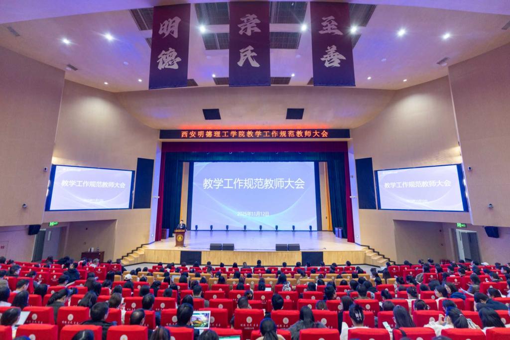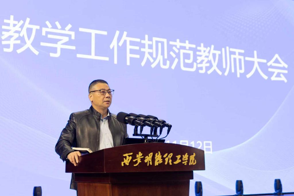 为进一步增强教学管理,强化教师教学规范意识,提升教学质量,2025年11月12日下午,学校在四季廊桥报告厅顺利召开了教学工作规范教师大会。教学副校长朱延波出席会议,各二级学院院领导、专业负责人(教研室主任)、办公室主任、教务员、专职教师共计800余人参加。会议由教务处副处长文亮主持。