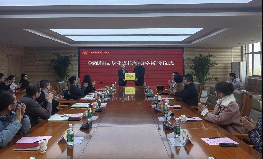 仪式上,经济与管理学院党委书记兼行政副院长何文举致辞,他对北京知链科技有限公司的慷慨捐赠表示衷心感谢,强调学校始终坚持产教融合、校企合作的办学理念,数字金融产业学院的建设是学校对接行业需求、培养应用型人才的重要举措,此次捐赠将为学校的教学实践与科研创新注入强劲动力。北京知链科技有限公司向数字金融产业学院捐赠了教学仪器设备,为学院实践教学条件的优化升级提供了有力保障。随后,企业向学院“金融科技专业虚拟教研室”授牌,将进一步推动学院在金融科技专业教学改革、资源共享及教研团队建设等方面的发展。