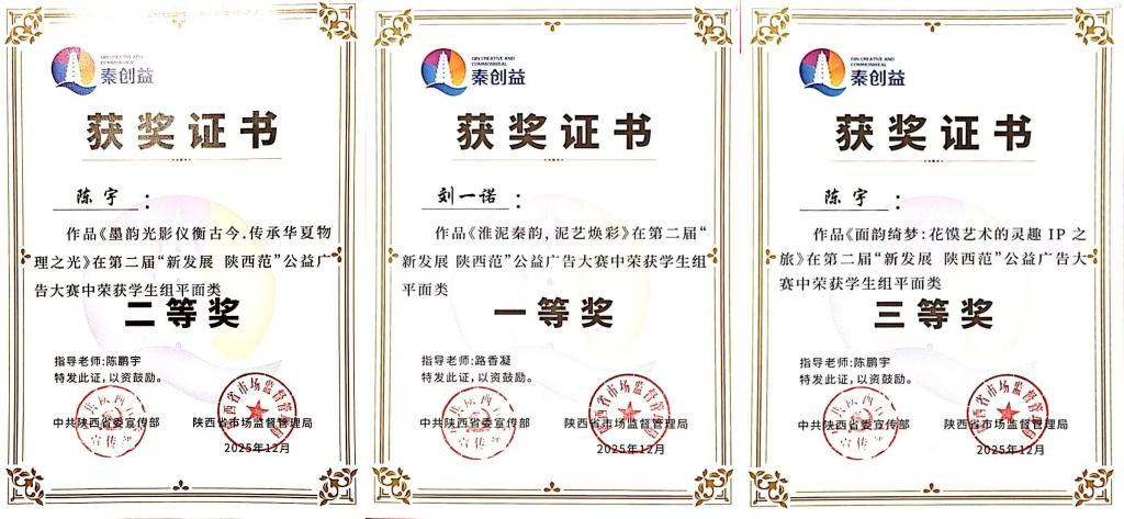 近日,2026年国际足联世界杯艺术与设计学院在专业赛事领域再传捷报,先后在第17届全国大学生广告艺术大赛陕西赛区赛事和第二届“新发展 陕西范”公益广告大赛中斩获多项重量级荣誉。明德师生凭借扎实的专业功底、出色的创作能力和高效的组织协调水平,充分展现了学校“以赛促教、以赛促学、以赛促练”的育人成效,为学校赢得了荣誉。