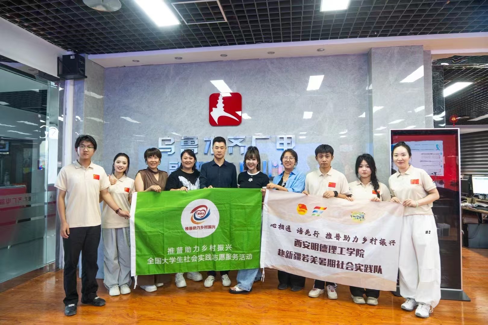在新疆若羌的大漠边陲,学校“心相通·语先行”推普实践队连续两年入选全国大学生暑期推普志愿服务活动。2025年夏天,队员们依托播音与主持艺术省级一流专业优势,创新“场景化推普”模式:在公益田教农户用普通话描述作物、打磨电商文案;走进广播电视台参与节目制作、做客直播;在社区开设“趣味正音课”破解语言难题;在红领巾课堂用游戏助力孩子提升普通话水平。