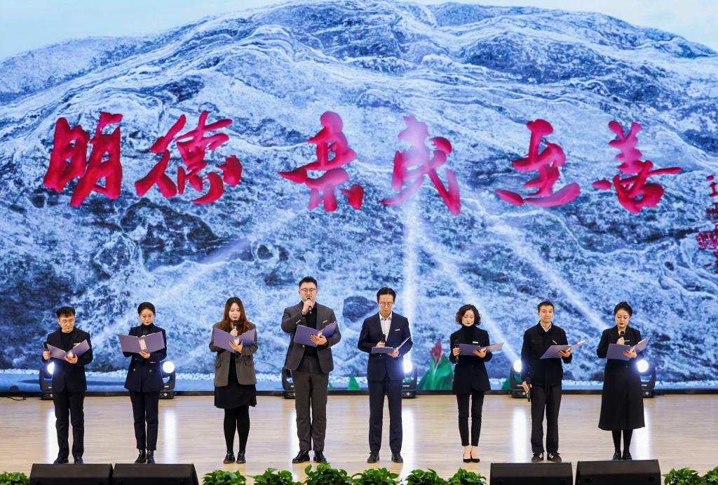 “再谱华章”篇章主要表达了锚定合格评估靶心,汇聚全校教职工智慧,彰显决战决胜豪迈志。语言文化传播学院与机关二工会的男女对唱《明德新貌》,唱出学校以迎评为契机实现的办学面貌新提升;经济与管理学院的歌舞《华章》、信息工程学院的舞蹈《喜乐年华》,以多样艺术形式描绘迎评成功后的美好愿景;艺术与设计学院和机关二工会带来的大合唱《明德之歌》,更是将对学校的热爱与迎评必胜的信念融入歌声,引发全场共鸣。