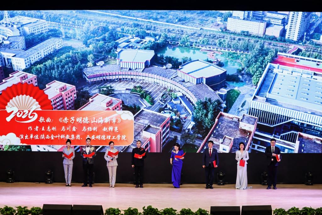 “赓续出征”篇章主要表达了传承办学历史文脉,勇担立德树人使命,奋力开启发展新征程。紧扣迎评使命,智能制造与控制技术学院的科技创意舞《秦俑情》融合传统与科技,诠释了学校在学科建设中为迎评夯实基础的探索;陕西金叶科教集团与学校联合演绎的原创朗诵《赤子明德·山海新章》,将集团支持与学校迎评的决心相融,诉说着明德人坚守教育初心、奋力迎评的使命;语言文化传播学院的创意演歌《上春山》旋律明快,校领导演唱的《我们走在大路上》更是唱出全体明德人迎评路上砥砺前行、一往无前的坚定信念。