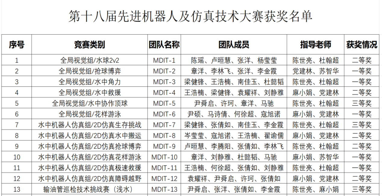 代表队参加了“全局视觉组、2D仿真组、工程项目组”三个组别的角逐。经过数月的刻苦训练和精心准备,最终站上了国赛的舞台。在比赛中他们充满朝气和活力,同心协力,奋勇拼搏,不畏强手,取得了优异的成绩,为比赛增添了青春的色彩,展示明德学子风貌。成绩的取得充分展示了学校“勤学、修德、明辨、笃实”的优良校风,是学校高素质应用型人才培养办学定位落实的生动体现。