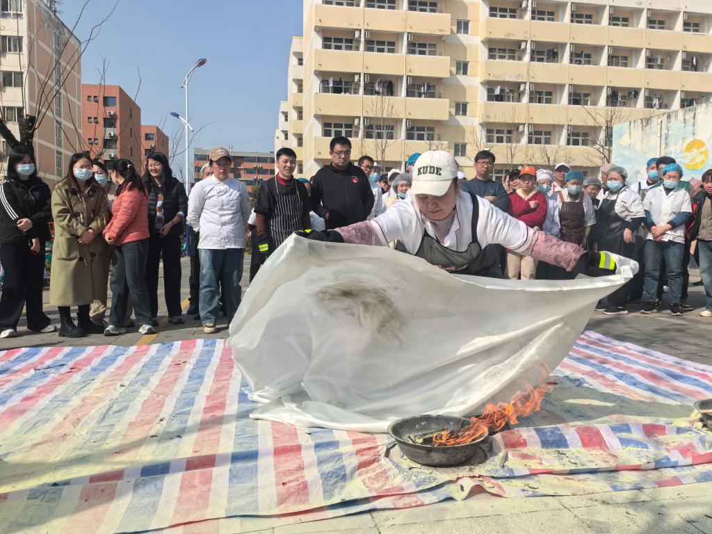 最后,副校长陈鹏在总结讲话中强调,食堂作为学校消防安全的重点部位之一,人员密集、设备复杂、用火用电用气频繁,安全隐患不容忽视。要求全体餐饮从业人员一要时刻绷紧安全这根弦,牢固树立“安全第一,预防为主”的思想,将消防安全意识融入到日常工作的每一个环节;二要以此次培训为契机,切实掌握基本防火、灭火和逃生自救技能,确保关键时刻能拉得出、用得上、起作用;三要严格落实消防安全责任制,定期开展自查自纠,及时消除各类安全隐患,共同筑牢校园安全“防火墙”。