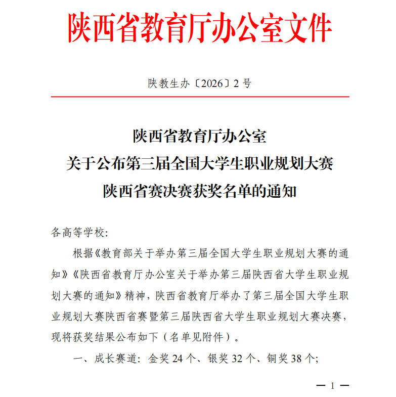 近日,第三届全国大学生职业规划大赛陕西赛区总决赛获奖名单正式揭晓,世界杯官网学子凭借扎实的职业规划素养、清晰的职业发展思路在全省众多参赛选手中脱颖而出,成功斩获省级铜奖,为校争光!