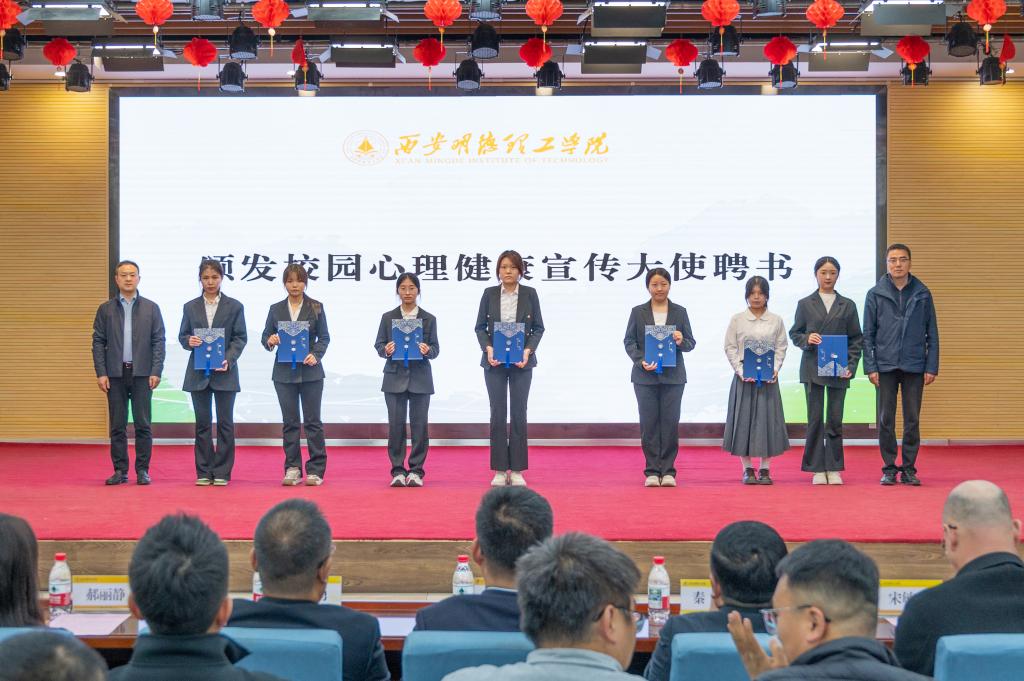 通识教育学院副院长薛飘宣读了《关于聘任校园心理健康宣传大使的决定》。