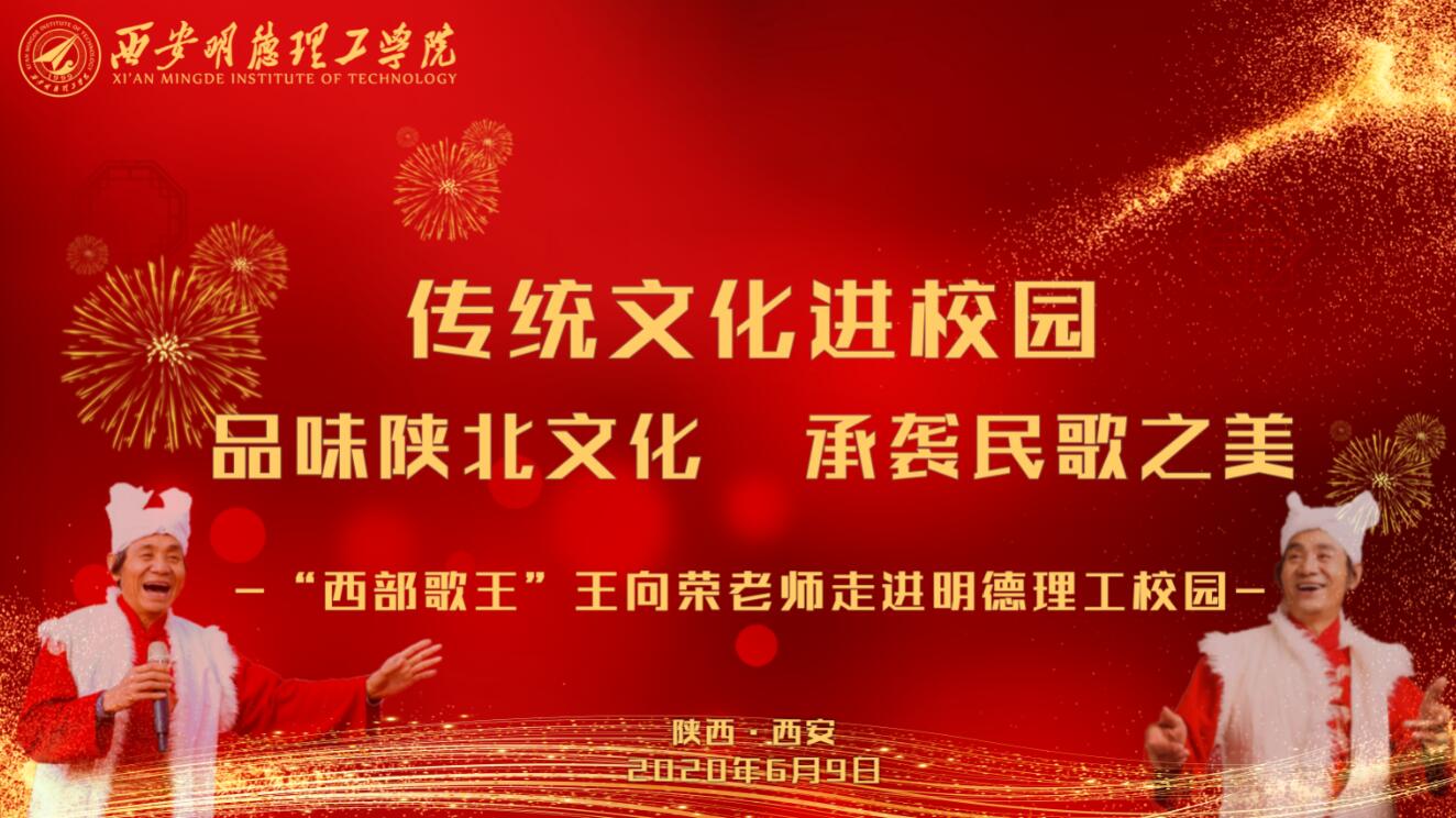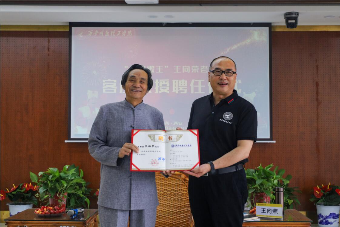“品味陕北文化、承袭民歌之美”。为了继承和发扬我国优秀传统文化,弘扬主旋律,传播正能量,6月9日下午,学院特邀国家级非物质文化遗产陕北民歌代表性传承人,被誉为“西部歌王”的王向荣老师及其弟子刘美玉、延锦园走进校园举办专题讲座。学校执行董事赵天骄、校长张渤和在校校领导参加了本次活动。陕西新浪、陕西传媒网、搜狐陕西、凤凰陕西等媒体记者亲临现场并对活动进行了报道。