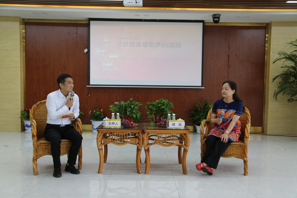 在父亲节即将到来之际,刘老师以其民、美声贯通的音色,极具感染力的情感激情演唱了《绒花 》、《 芦花 》并与学校师生合作了《父亲》、《烛光里的妈妈》等歌曲为全天下的父母送上了祝福,台下的老师、同学们报以热烈的掌声。