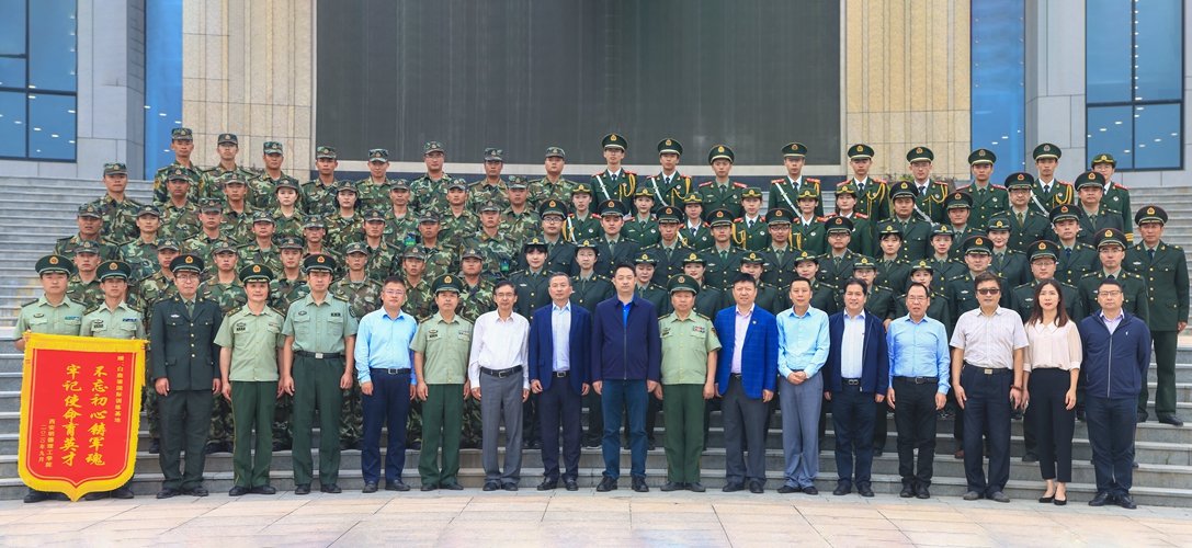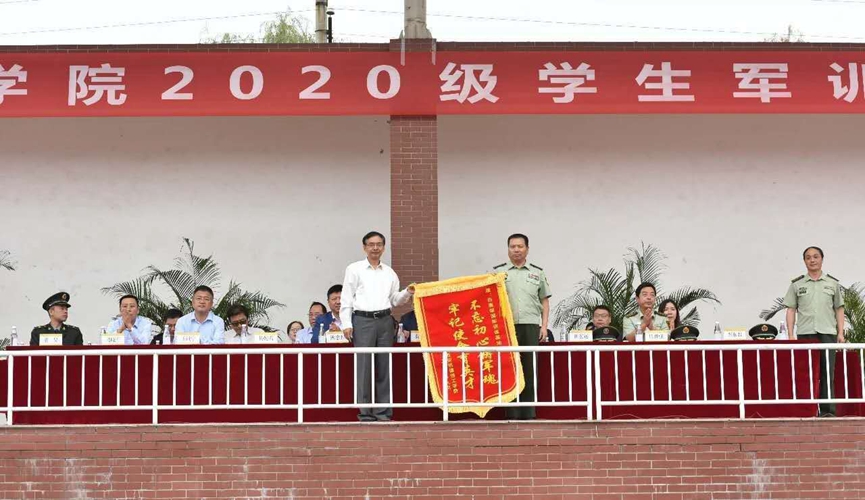 学院党委书记杨健君为承训单位白鹿塬学生军训基地赠送锦旗。