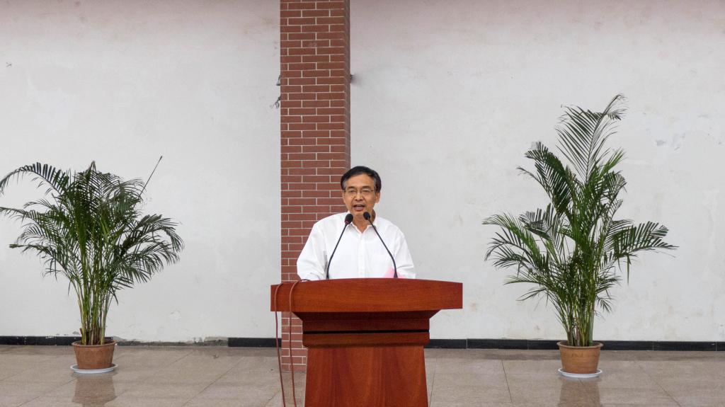 学院党委书记杨健君发表讲话。他首先肯定了军训团的军训成果,圆满完成预定军事训练科目。参训学员也从一名高中生转变为一名合格的大学生。杨书记从三个方面对军训工作做出了总结:第一是军训组织严格有序内容丰富,军政干部发扬风格,受训学员吃苦耐劳,全方位多角度扎实上好同学们地开学第一课,为学生未来的大学生活打下了良好的基础。第二是通过军训完成了国防教育,激发了同学们浓厚的爱国情怀,树立起坚实的国防观念。第三是通过军训锤炼了同学们的意志品质,让同学们学会在困难面前选择坚持而不是轻言放弃。最后杨书记希望同学们继续保持军训时的优良作风,把好的习惯带入到未来的学习生活中,努力成为政治坚定,能力出众的祖国栋梁。