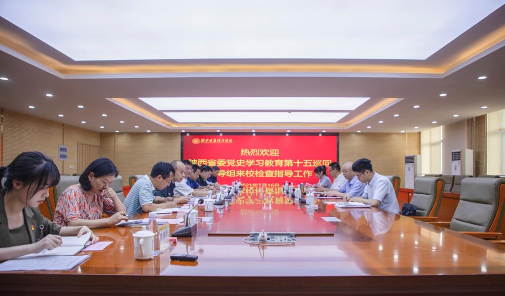 7月16日,陕西省委党史学习教育第十五巡回指导组组长赵军政、成员曹振纲、韩同非、贺郁萱一行来世界杯官网进行第二轮巡查指导党史学习教育工作。巡回指导组通过列席党史学习教育专题组织生活会、查阅相关资料、查看“我为师生办实事”项目落实推进情况等形式,对学校党史学习教育开展情况进行深入巡查,对专题组织生活会和党史学习教育给予全面指导帮助。