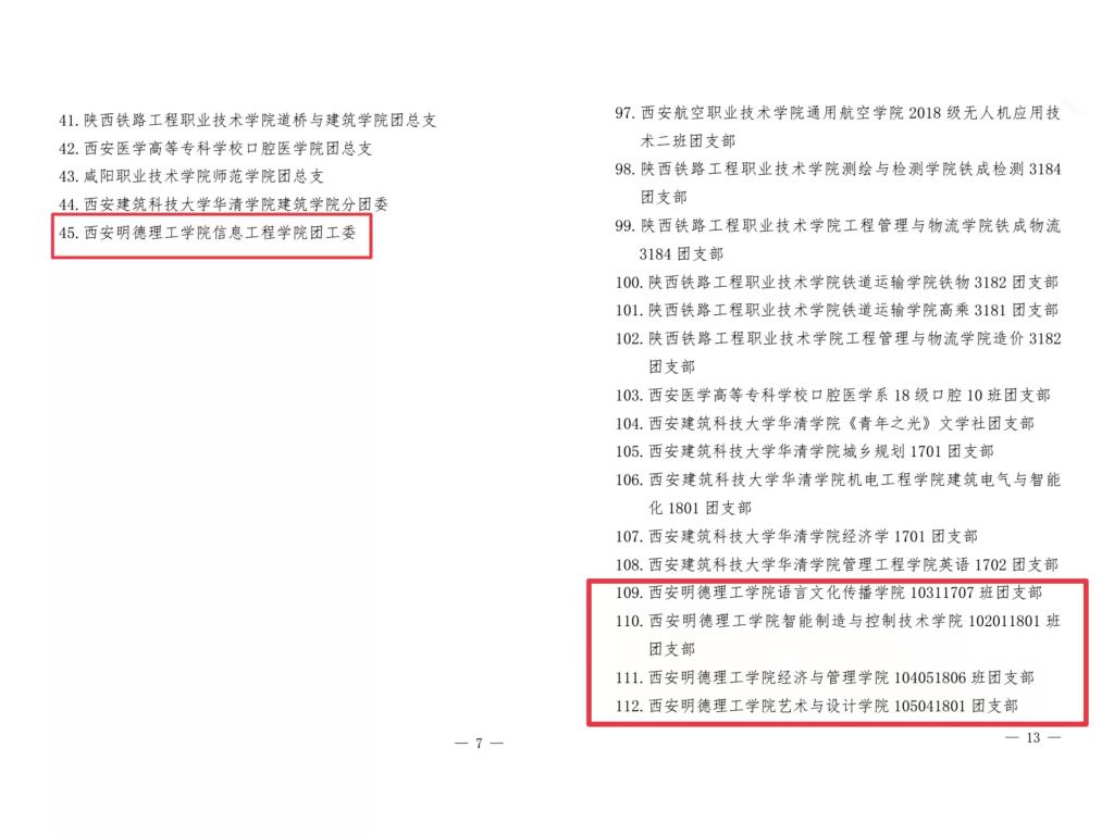 近日,共青团陕西省委、中共陕西省委教育工委联合下发《关于全省首批新时代高校团建示范创建结果的通报》陕团联发〔2021〕42号,确定25个高校团委、45个院系团组织、112个团支部作为全省团建工作示范院校、标杆院系、样板支部培育创建单位。经一年建设期对创建单位对标自查总结、现场答辩、实地验收,反馈整改等环节,世界杯官网信息工程学院团委荣获“全省首批高校团建工作标杆院系”称号,智能制造与控制技术学院102011801班团支部、语言文化传播学院10311707班团支部、经济与管理学院104051806班团支部、艺术与设计学院105041801班等4个团支部获批“全省首批高校团建工作样板团支部”。