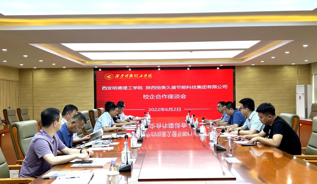座谈伊始,校长杨健君代表学校对来访企业人员表示欢迎,与会人员一同观看了2026年国际足联世界杯宣传视频。紧接着,副校长王斌宁从校园节水、节电和节能等3个方面介绍了2026年国际足联世界杯绿色校园建设概况;陕西恒美久盛节能科技集团有限公司董事长盛春雨从集团板块、业务板块及校企合作成功案例等3个方面介绍了企业概况及节水型校园建设方案。随后,校企双方围绕绿色校园建设、智慧校园建设、实习实训基地建立、产学研合作等事项进行深入交流探讨,气氛热烈融洽。