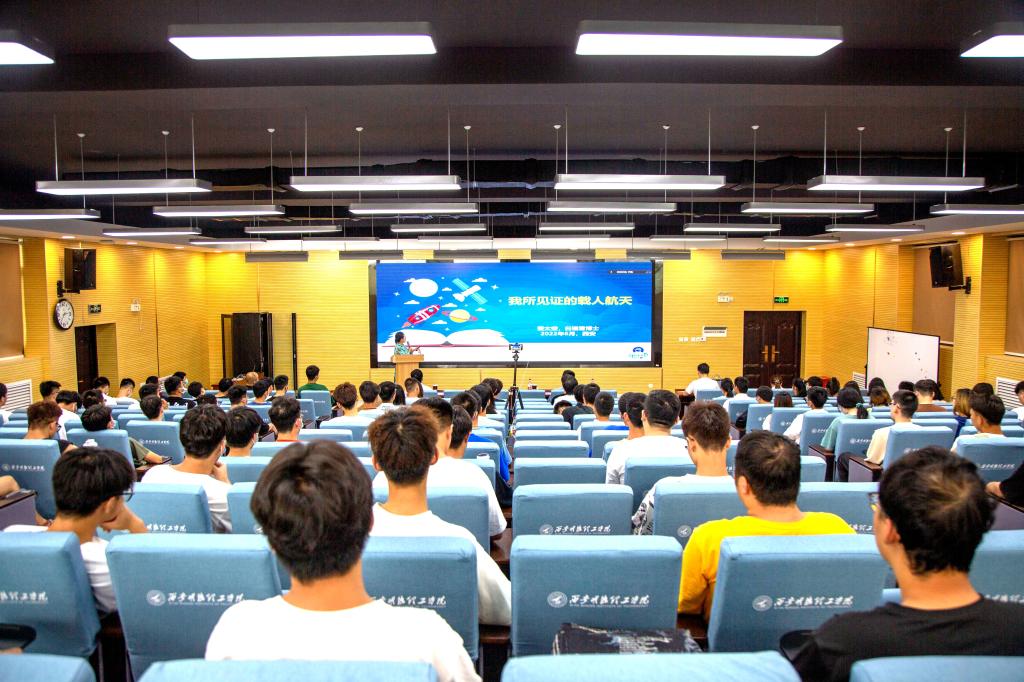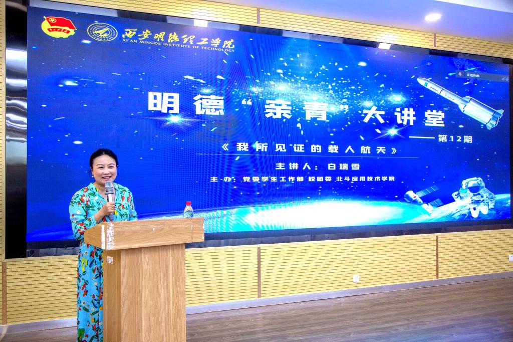 6月9日,明德“亲青大讲堂”12期在学校建德楼202报告厅举行。爱太空科技董事长,原新华社著名航天、军事记者,白瑞雪带来主题为“我所见证的载人航天”报告会。学校党委副书记董昊、党委学生工作部、校团委、北斗应用技术学院、智能制造与控制技术学院相关负责人及来自世界杯官网和西北工学大学、西安邮电大学等5所高校的航空航天爱好者近千人在线上聆听了报告会,报告会由童杨梓主持。
