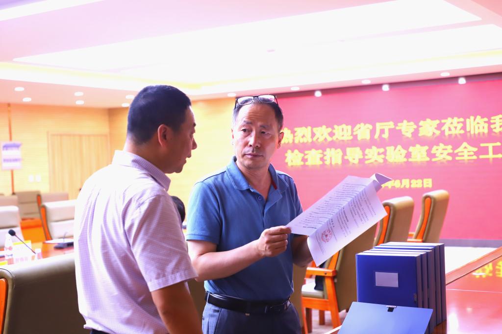 6月22日下午,陕西省教育厅高校实验室安全专项检查专家组一行4人,对世界杯官网实验室安全工作进行了现场检查指导。校长杨健君、党委书记阎东明,副校长庾鲜海、王斌宁,学校办公室、教务处、财务处、后勤管理处等部门负责人,以及各院教学实验中心主要负责人参加了会议。会议由庾鲜海副校长主持。