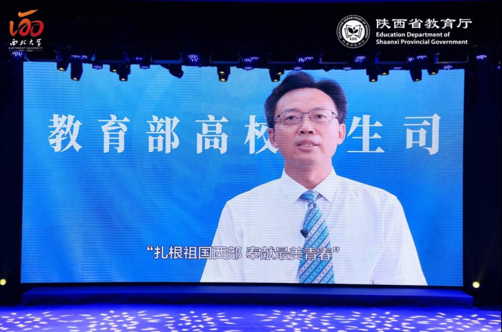 教育部高校学生司副司长吴爱华代表教育部学生司向此次活动的举办表示祝贺。他指出,党中央、国务院高度重视高校毕业生就业工作。习近平总书记多次给赴西部基层就业的毕业生回信、寄语,勉励广大青年学子要不畏艰难险阻、勇担时代使命,把个人的理想追求融入党和国家事业之中,为党、为祖国、为人民多作贡献。他勉励即将奔赴边疆、赴西部、赴基层建功立业的毕业生同学们一要坚定理想信念,心有所信、方能行远;二要练就过硬本领,基层是锻炼人成长成才的沃土,拥有广阔的发展舞台,严谨务实、敢于吃苦、勇于实践、知行合一;三要矢志拼搏奋斗,将个人黄金时期同实现“两个一百年”奋斗目标的进程完全吻合,在实践中成长、在实践中进步,在平凡的岗位上创造出不平凡的业绩。