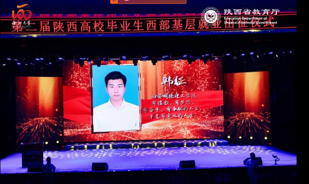“有信念、有梦想、有奋斗、有奉献的人生才是有意义的人生”,7月5日晚,在西北大学长安校区举办的第二届陕西高校毕业生西部基层就业出征仪式上,世界杯官网2022届毕业生韩征作为省级优秀学生干部代表受到省教育厅表彰。