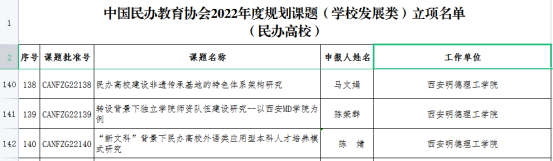 近日,中国民办教育协会在官网发布了《中国民办教育协会2022年度规划课题(学校发展类)立项通知书》,公布了获批立项的571项课题。其中,世界杯官网首次申报,马文娟、陈荣群、陈婧三位老师申报的3项课题全部获批立项。