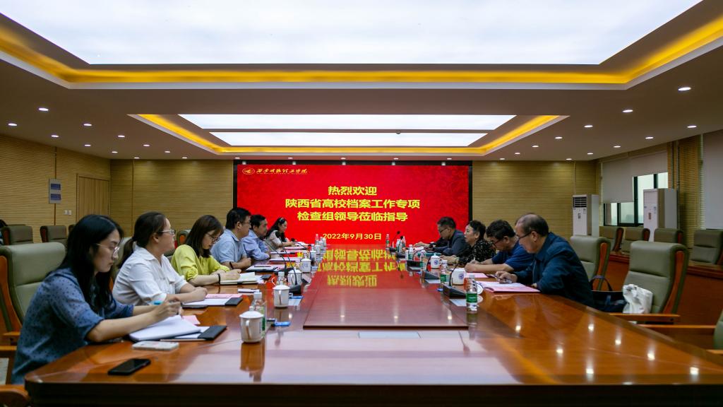 莅临本次档案工作专项检查的领导、专家有省教育厅调研员、省高教系统档案学会副理事长王瑛、省高教系统档案学会理事长吴连书、西安电子科技大学档案馆馆长秦明、西北工业大学档案馆馆长戚红梅、西安工程大学档案馆馆长高建会。本次检查分为听取汇报、参观考察、实地检查、反馈意见四个阶段,学校校长杨健君、副校长王斌宁、学校办公室副主任刘书沛、图书馆(档案、校史馆)副馆长强丽丽及档案馆相关工作人员参加了会议,会议由学校副校长王斌宁主持。