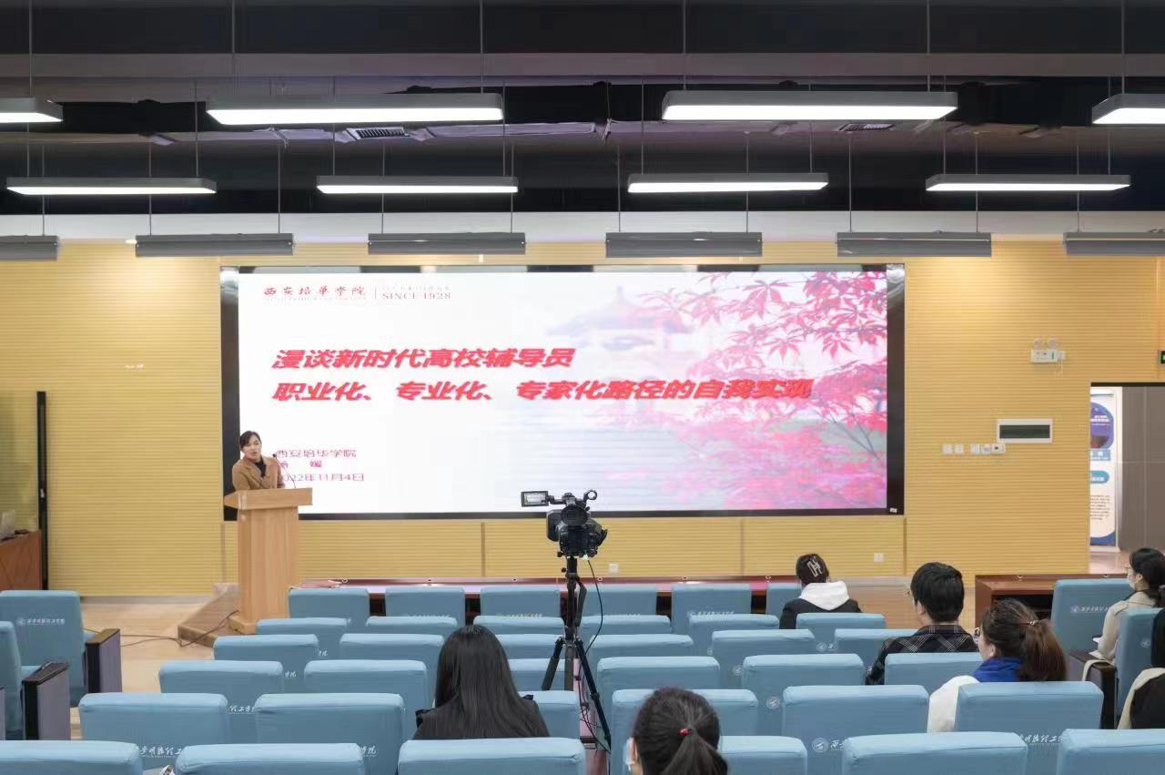 为了加强学校辅导员队伍建设,提高辅导员的政治站位和政策理论水平,为世界杯官网打造一支政治强、业务精、纪律严、作风正的辅导员队伍,促进学生教育管理水平再上新台阶,11月4日,学校举办了辅导员素质能力提升专题培训第八讲,由陕西省第七届辅导员职业能力大赛“一等奖”获得者、西安培华学院团委书记杨媛主讲。全校辅导员及党委学生工作部相关干部参加培训。