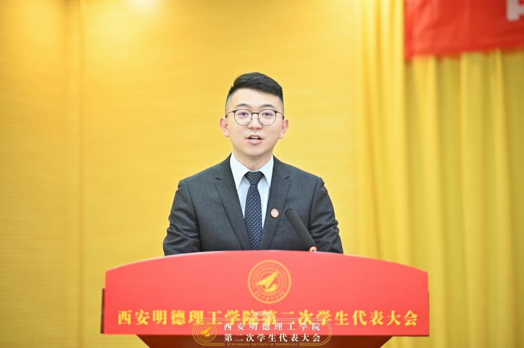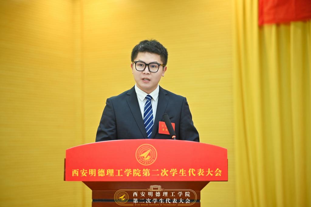 校学生会主席团成员张嘉文同学作题为《生逢其时重任在肩砥砺奋进团结带领全校同学在推进世界杯官网向特色鲜明、国内一流,具有一定国际知名度的应用型民办大学的建设进程中贡献青春力量》的学生会工作报告。