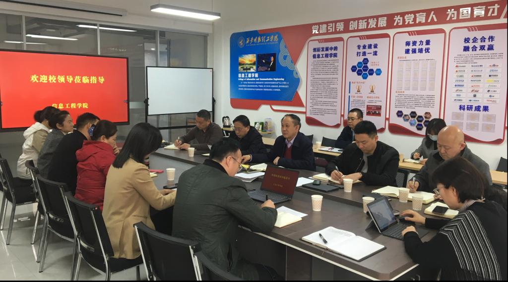 信息工程学院领导班子围绕学院基本情况、专业建设、课程建设、师资队伍、实验室建设、产业学院,党建和学生等工作,以及学院在“十四五”时期,合格评估来临之际面临的机遇与挑战等作深入详细汇报。
