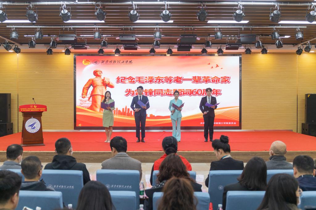 校团委书记童杨梓宣读了《关于开展2023年“学习二十大 永远跟党走 青春志愿行”学雷锋志愿服务活动的通知》。校团委副书记乔建宣读了《纪念毛泽东等老一辈革命家为雷锋同志题词60周年》系列活动安排。