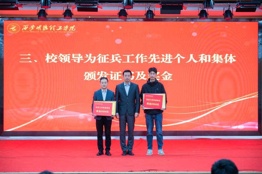 会上,学校党委副书记董昊为征兵工作先进单位颁发了奖状及奖金。招生就业中心副主任王东辉、人民武装部部长童杨梓为征兵工作先进个人颁发了证书及奖金。