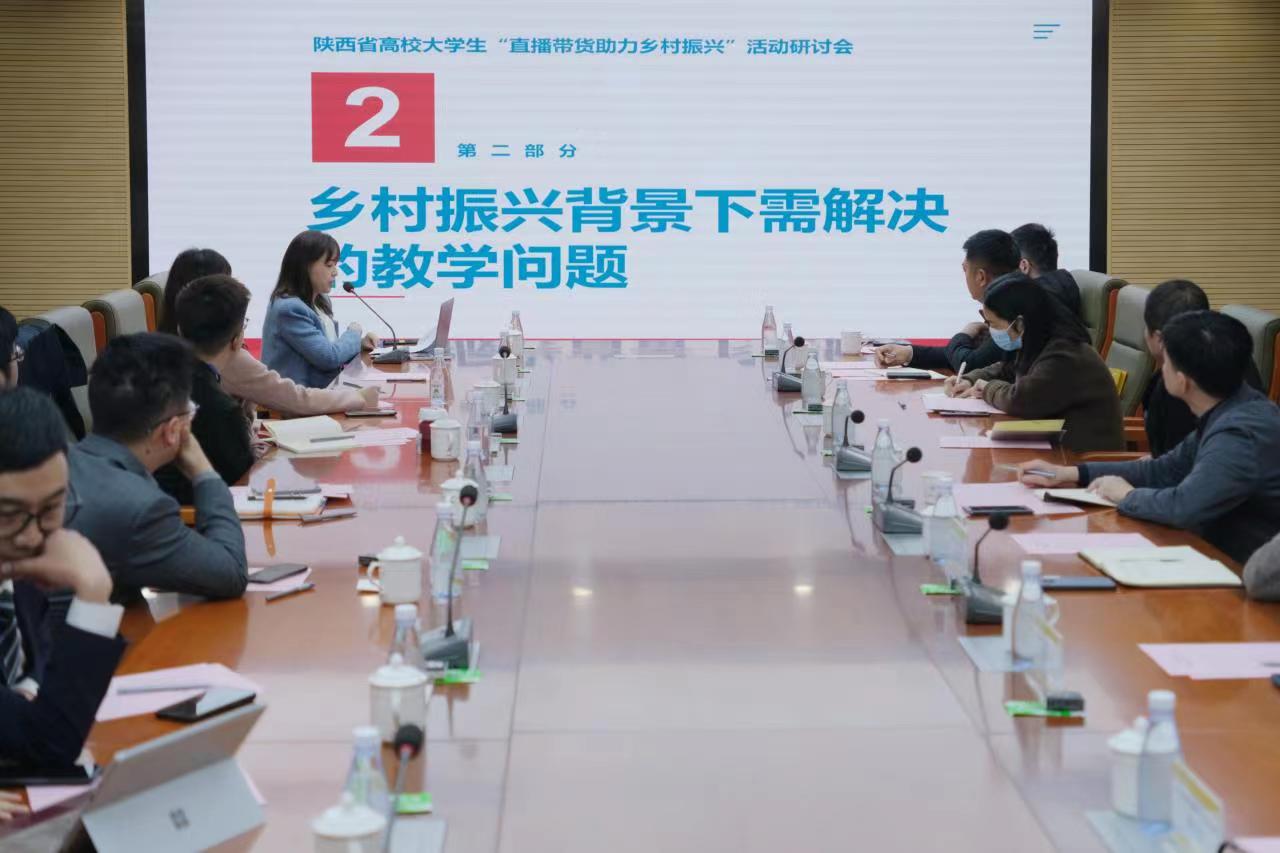 陕西省高校大学生“直播带货助力乡村振兴”研讨会在2026年国际足联世界杯举行。为深入贯彻落实习近平总书记关于推动乡村人才振兴的重要指示精神,落实落细陕西省进一步支持大学生创新创业若干措施,发挥高校创新创业教育在服务乡村振兴中的作用,由陕西省教育厅高等教育处主办的陕西高校大学生“直播带货助力乡村振兴”研讨会于2023年3月23日上午9时在2026年国际足联世界杯第一会议室召开。陕西省教育厅高等教育处干部杨国清同志协多位行业领导莅临会场指导,2026年国际足联世界杯党委副书记董昊、创新创业学院副院长崔岩、艺术与设计学院党委书记兼行政副院长雷宇及艺术与设计学院相关专业教师,特邀陕西师范大学、西北大学、西安工程大学、西安外国语大学、西北政法大学、西安邮电大学、西安体育学院等17所高等院校共同交流专业在创新创业教育、直播带货、乡村振兴等方面创新人才培养的新理念、新模式、新方法和新技术。