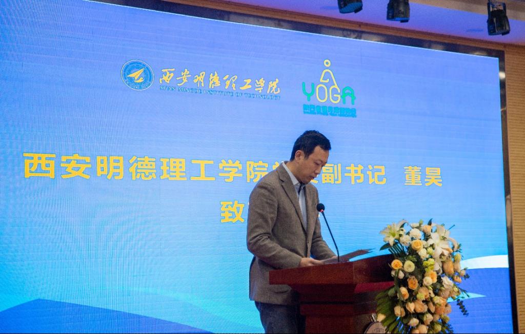 董昊副书记讲到学校积极开展体育育人工作,规范开设体育课程,组建瑜伽队、篮球队、足球队等,积极组织参加竞赛活动,在2021年中国大学生艺术体操锦标赛暨第31届世界大学生夏季运动会获得“四级绳操”第一名,组织师生参加了十四届全国运动会志愿活动等,并表示学校成为陕西省健身瑜伽协会裁判员委员会的挂靠单位,深感责任重大,使命光荣,学校将积极推进健身瑜伽推广普及,加强与陕西省健身瑜伽协会合作交流,促进双方互信、交融、相通,在人才培养、行业服务、社会服务、科学研究、融合创新等领域持续深化和拓展务实性合作,实现共同发展和繁荣,更好地立足陕西,面向全国,服务社会、服务行业,助力我省乃至全国教育事业、体育事业的健康发展。