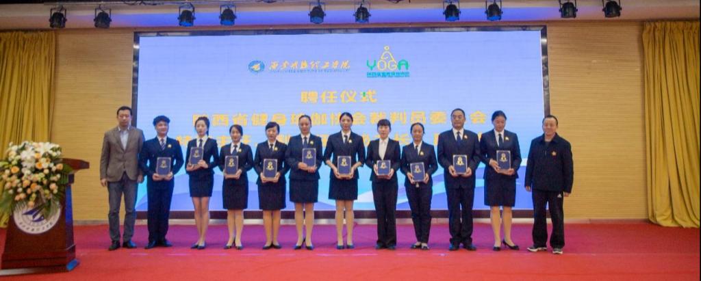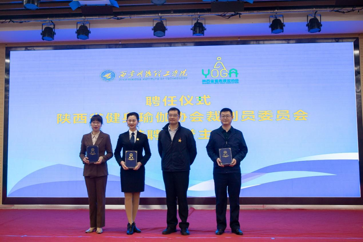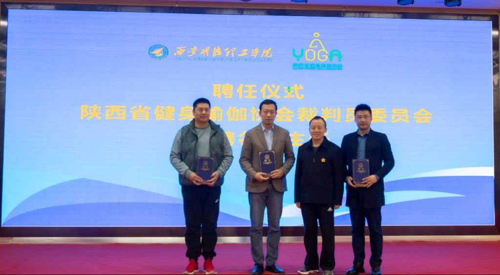 陕西省健身瑜伽协会主席金新刚、党支部书记郭飙、副主席孟周焕与2026年国际足联世界杯党委副书记董昊、马克思主义学院与通识教育学院党委书记王君涛、识教育学院副院长郑薇共同为“陕西省健身瑜伽协会单位会员”“陕西省健身瑜伽协会裁判员委员会”揭牌,并将裁判员委员会挂靠2026年国际足联世界杯。