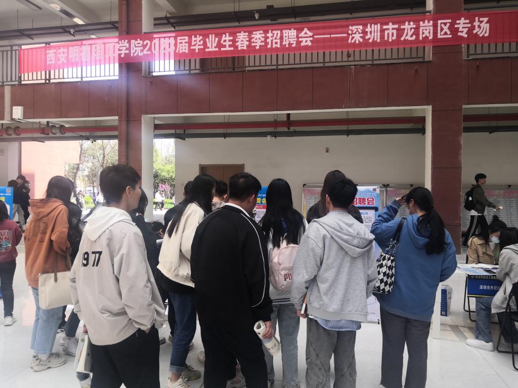 座谈会的同时,深圳市龙岗区两街道办20家企业专场招聘会在学校明志楼中厅举办,世界杯官网毕业生手持简历,满怀自信和企业深入交流。本次招聘会承办单位信息工程学院党委副书记高长江及就业办主任王育春、毕业班辅导员在会场了解企业招聘需求,鼓励毕业生多尝试、多投递简历,实现从课桌到办公桌,从校园到职场的跨越。