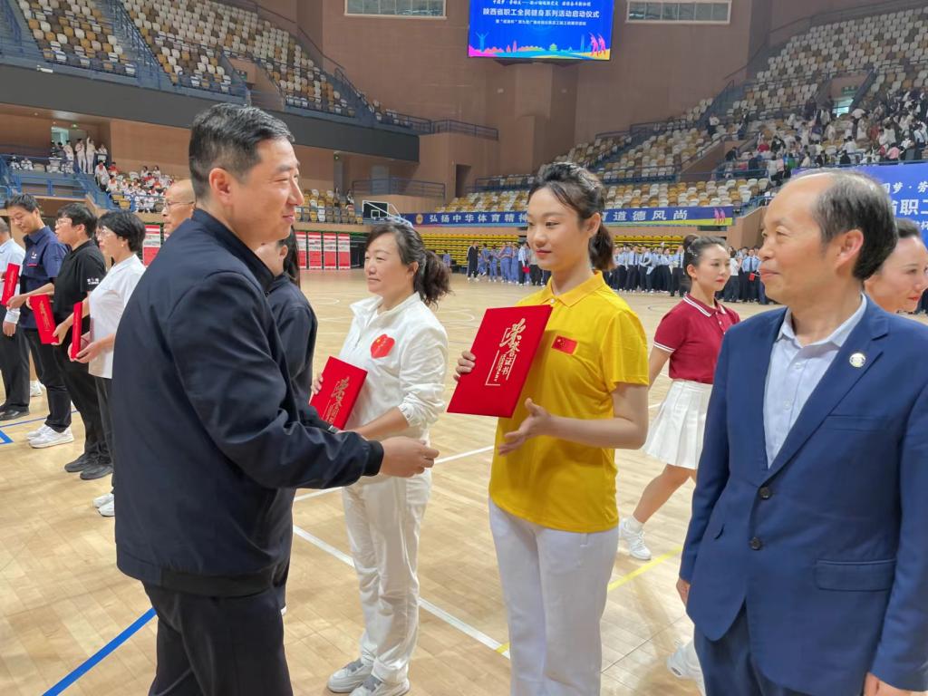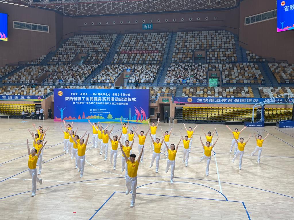 5月26日上午,“中国梦·劳动美——凝心铸魂跟党走团结奋斗新征程”陕西省职工全民健身系列活动启动仪式暨“经发杯”全省职工第九套广播体操比赛及工服工装展示活动在西安城市运动公园体育馆举行。