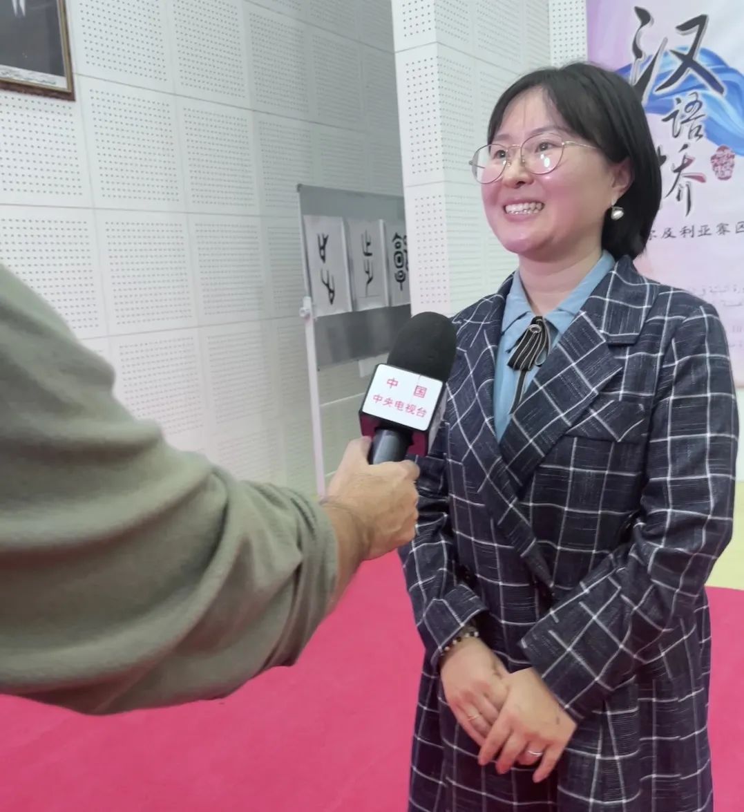 中国驻阿尔及利亚大使李健为冠军颁奖,向优秀指导教师贺瑜祝贺并问候,与贺瑜老师及学生合影留念,赛后中央电视台单独采访了贺瑜老师。