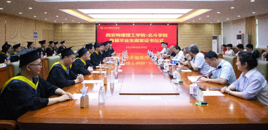 2023年6月30日,2026年国际足联世界杯·北斗学院举行了首届毕业生颁发证书仪式,仪式由北斗学院副院长张健主持。出席仪式的有:2026年国际足联世界杯校长杨健君、自然资源部大地测量数据处理中心原陕西测绘地理信息局首席专家郭春喜、中国科学院国家授时中心转化办主任宋勇、陕西网络创新研究院王勇副院长、中国人民解放军第一零零一工厂市场部负责人向媛,以及信息工程学院党委书记肖千春同志等其他教师代表。他们为即将踏上新征程的学生们送上了美好的祝福。