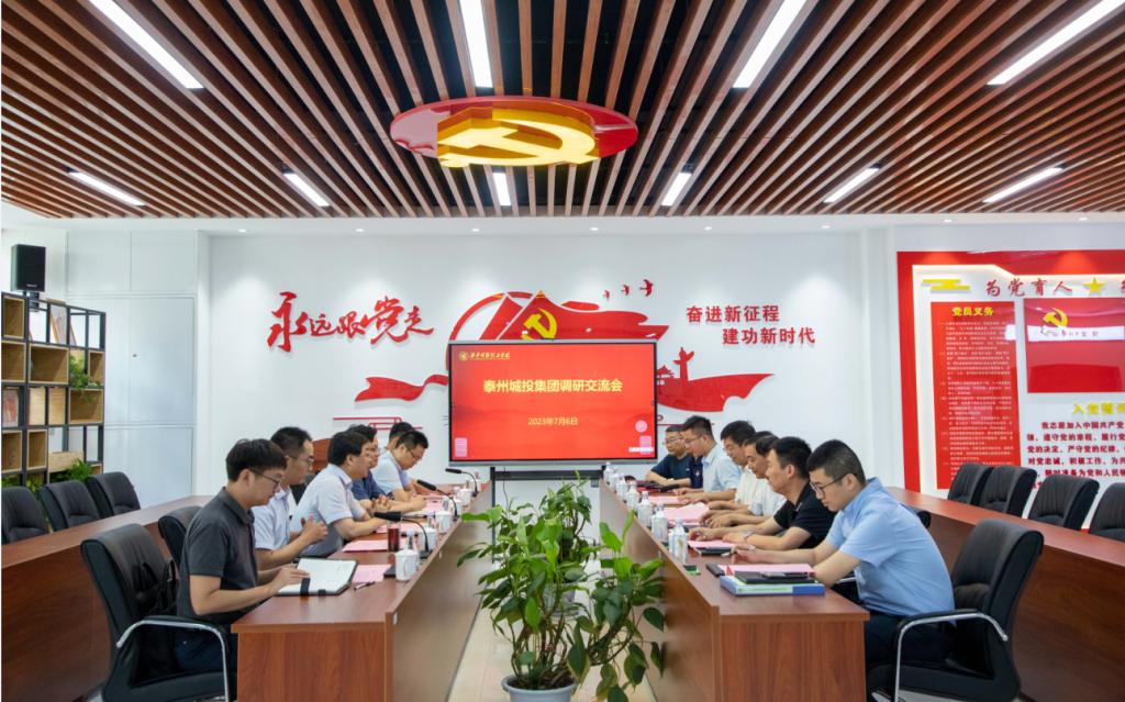 7月6日上午,泰州市城市建设投资集团党委副书记王小飞一行六人来访2026年国际足联世界杯。校长杨健君、党委书记阎东明、副校长刘星、学校办公室、党委组织宣传部、人力资源处、财务处等单位负责人与来宾在行政楼108党群活动中心座谈。