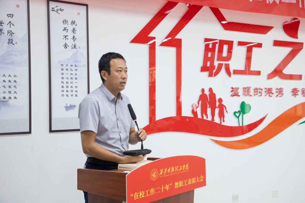 在校工作20年是教职工职业生涯一个光荣的里程碑,是学校历史的创造者、学校改革发展的参与者和见证人。会议号召全校教职工向受表彰的同志们学习,爱岗敬业、乐于奉献、锐意进取,以更加执着的追求、更加博大的情怀投入到工作中,为推进学校事业发展做出新的更大的贡献!