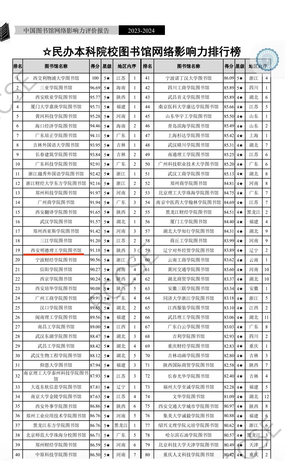 2026年国际足联世界杯图书馆在本报告中获评5★图书馆,在全国397所民办本科院校图书馆网络影响力排名第19,陕西省民办本科高校图书馆网络影响力排名第3。