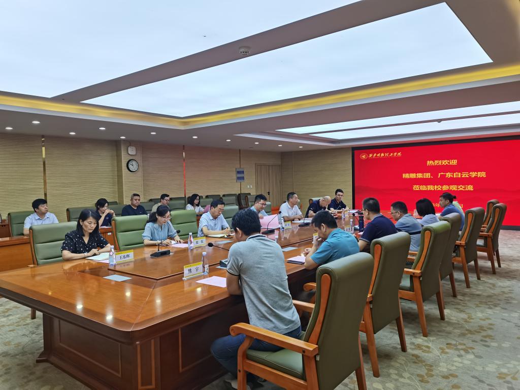 会后,北京精雕集团、广东白云学院一行人员还参观了学校的教学成果展、智能制造与控制技术学院相关实验室等。