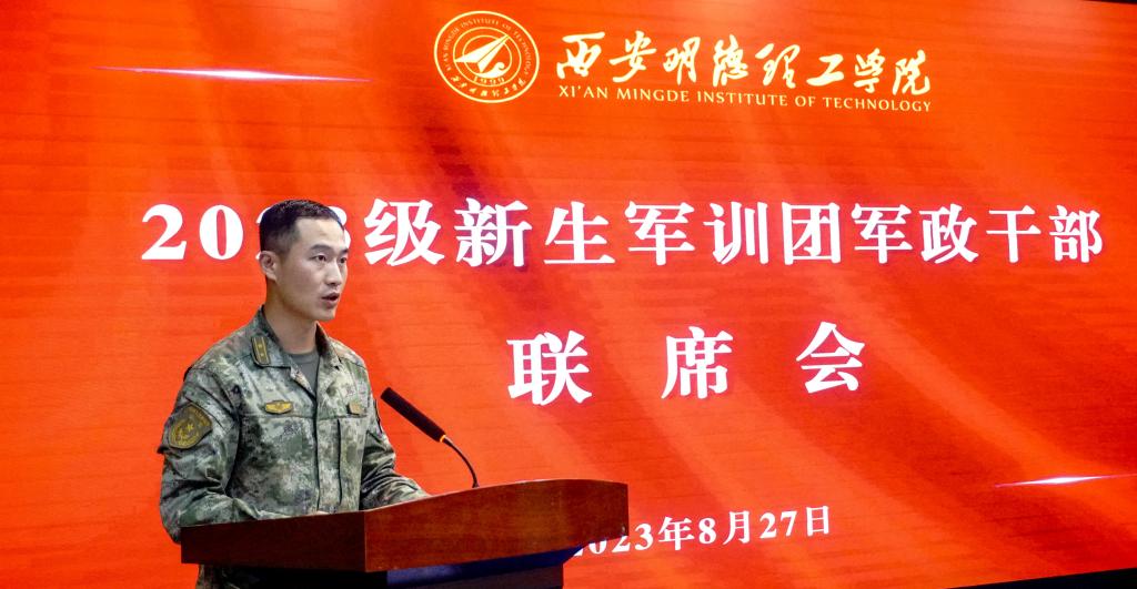 为安全有序地做好2023学年新生军事训练工作,8月27日下午,2023级新生军训军政干部联席会议于建德楼203报告厅举行。学校党委副书记、军训团政委董昊,空军某部、学校军训团团长武文斌,空军某部、学校军训团参谋长余托及全体军政干部参会。会议由军训团副政委王飞主持。