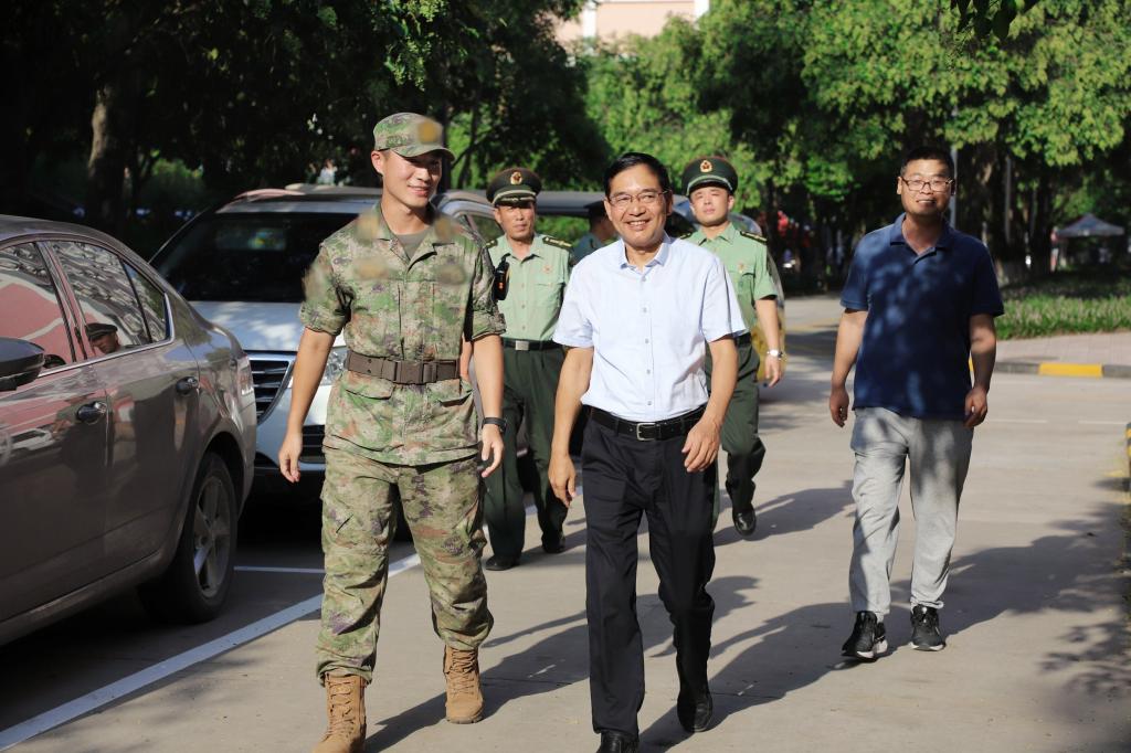 9月3日下午,校长杨健君、党委副书记董昊对2023级新生军训团全体教官及军政干部进行慰问交流。学校工会副主席王君涛、军训团相关干部陪同慰问。