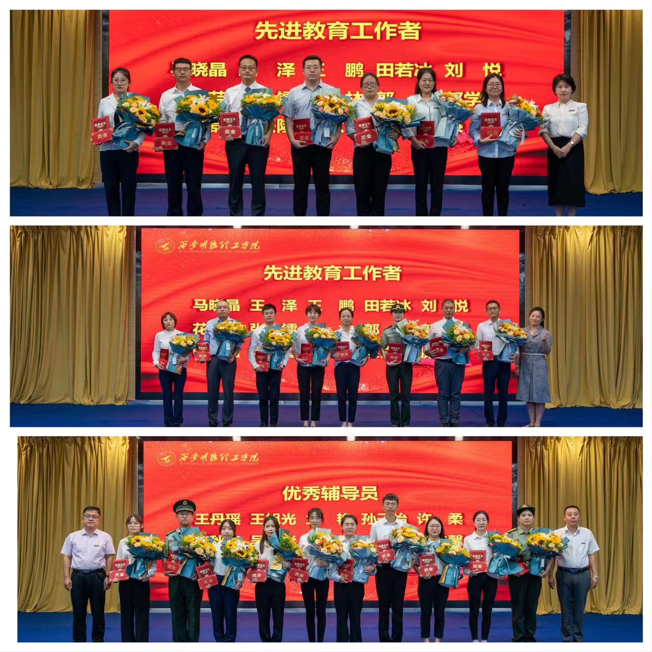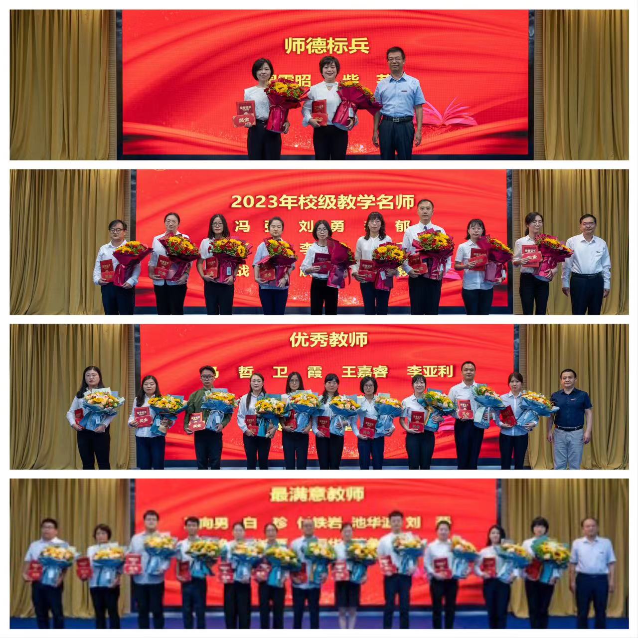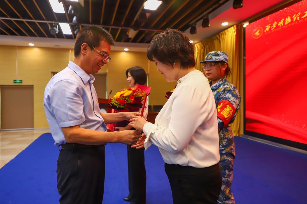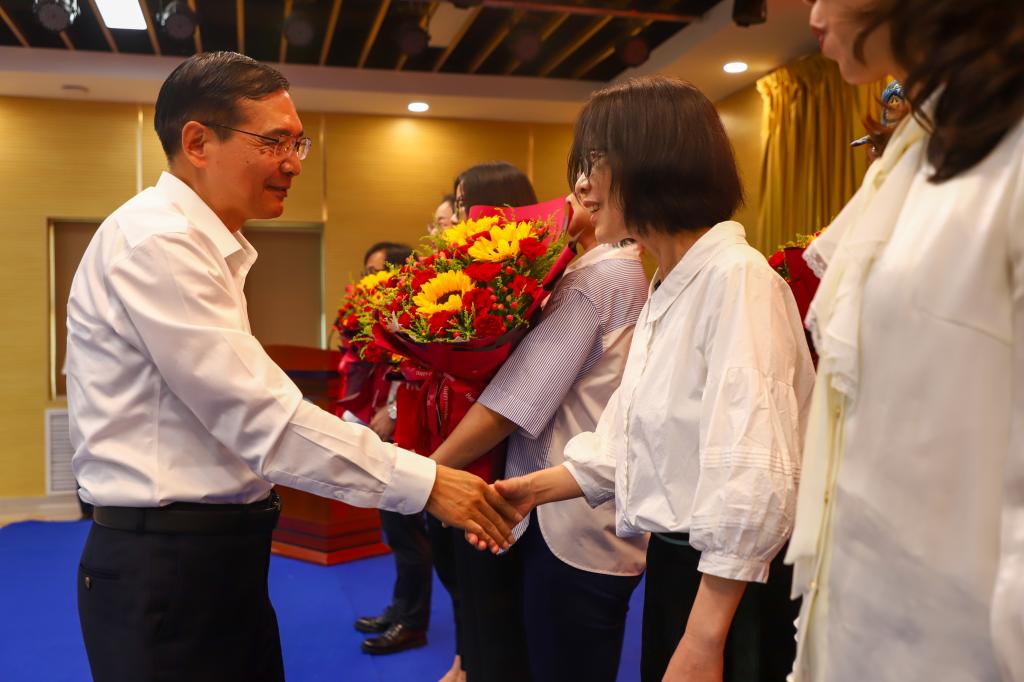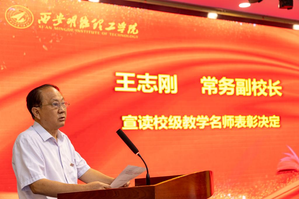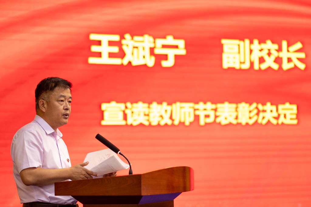 常务副校长王志刚宣读了校级教学名师表彰决定、副校长王斌宁宣读了教师节表彰决定,勉励受表彰的同志珍惜荣誉、戒骄戒躁,发挥示范带头作用,在教育教学各项工作中取得新的更大成绩。号召全校教职工要以受表彰的先进典型为榜样,立足岗位,踔厉奋发,为学校高质量转型发展贡献力量。