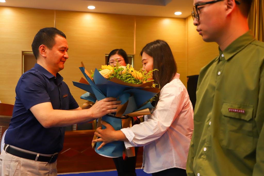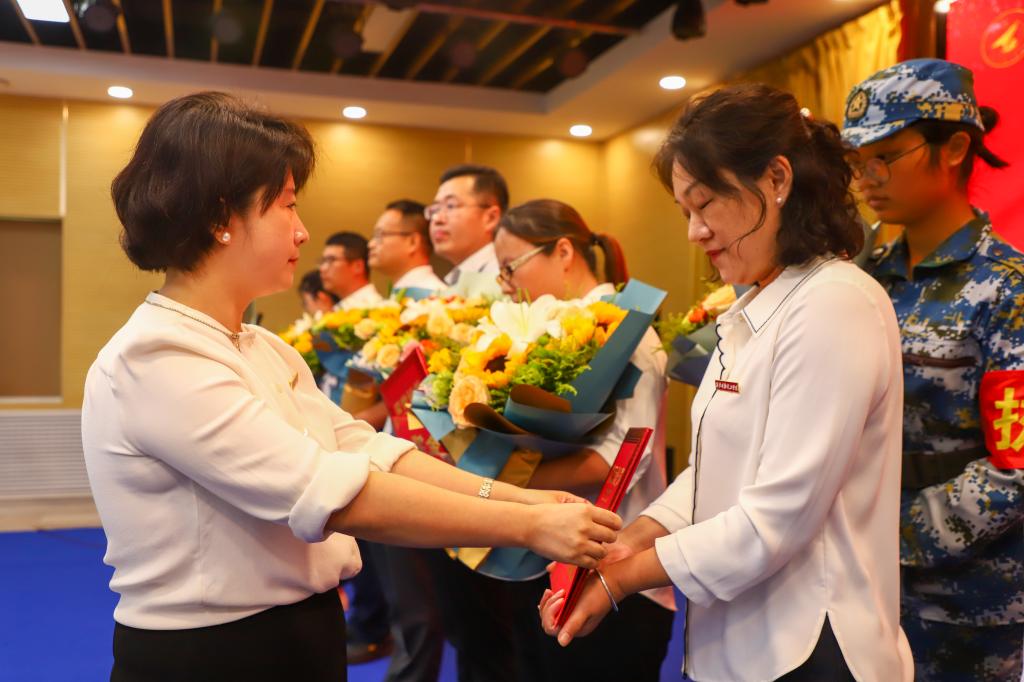 明德源教育集团领导和校领导为获得表彰的先进个人颁发了荣誉证书和奖金,送上了节日的鲜花。