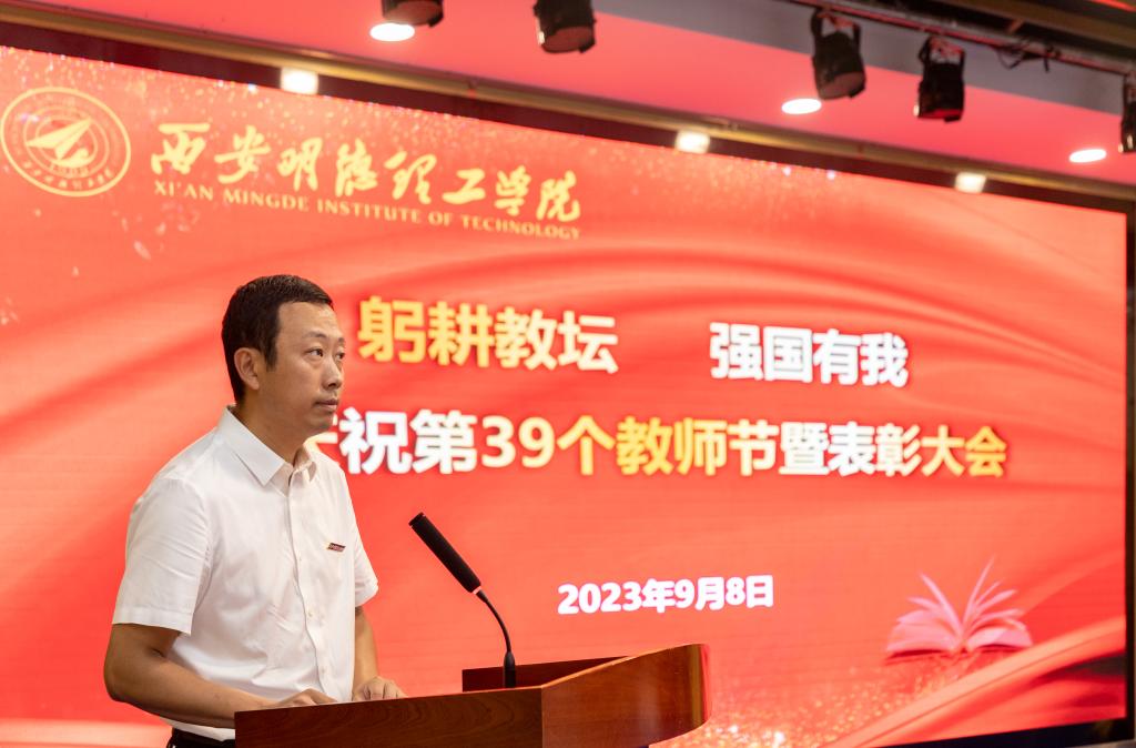 金秋送爽,硕果盈枝。9月8日上午,学校庆祝第39个教师节暨表彰大会在建德楼203报告厅隆重举行。明德源教育集团常务副总裁王鹏飞、财务总监田雪、总裁助理李瑞出席会议,全体校领导、科级及以上干部、获奖代表、专业(课程)负责人、学生工作干部、新教师及学生代表参加大会。大会由党委副书记董昊主持。