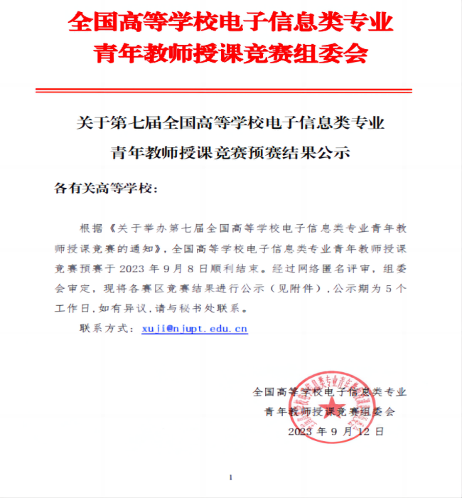 2023年9月12日,第七届全国高等学校电子信息类专业青年教师授课竞赛预赛结果公示,世界杯官网信息工程学院四名教师获得华西赛区三等奖。