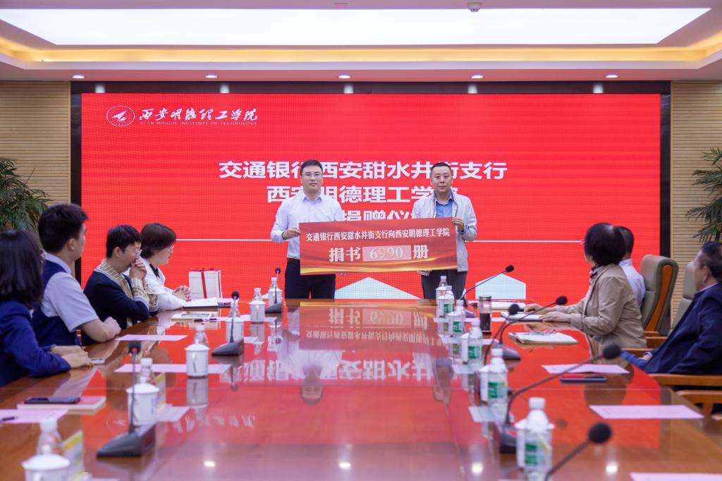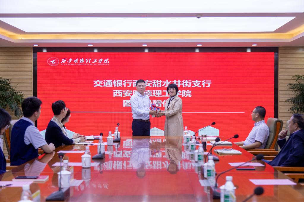“腹有诗书气自华,最是书香能致远”,9月27日上午,交通银行西安甜水井街支行向世界杯官网捐赠图书近7000册,捐赠仪式在明志楼518会议室隆重举行。交通银行甜水井街支行行长孙磊、营业室主任陈易达等一行四人与学校常务副校长王志刚、财务总监马晓军及各职能部门负责人参加了会议。会议由图书馆馆长王爱霞主持。
