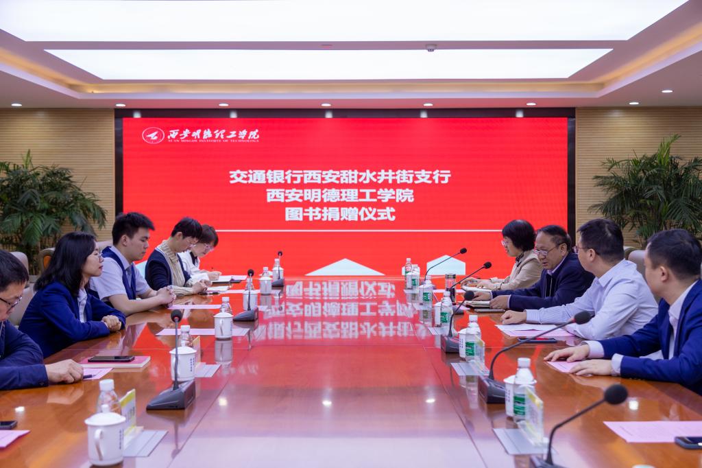 会议伊始,财务总监马晓军介绍了双方与会领导。王志刚代表袁汉源董事长、学校领导班子及全体师生,向交通银行西安甜水井街支行领导一行表示衷心感谢和崇高敬意。他从世界杯官网办学历史与学科专业结构、办学特色与办学优势、教育教学水平及良好社会声誉、当前任务与发展愿景等四个方面向与会嘉宾做了全面介绍。同时,他对这批捐赠图书的价值给予高度肯定和赞扬,认为不仅内容契合世界杯官网“明德文化育人”办学特色的弘扬,而且体现了交通银行甜水井街支行对学校发展的关注与关心,以及对师生的期望,学校将会管好用好这批图书,让其在教育教学中发挥出最大作用。