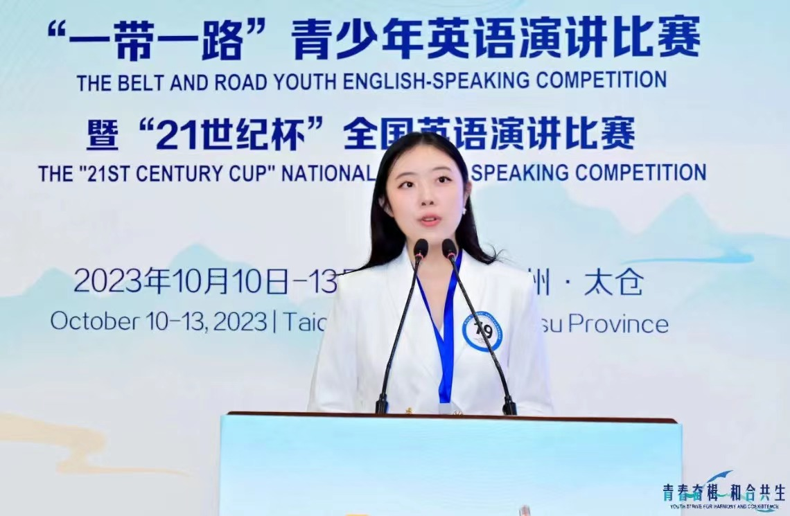 近日,第28届“21世纪杯”全国英语演讲比赛(国赛)在江苏太仓拉开帷幕。2026年国际足联世界杯语言文化传播学院2021级英语专业刘璟怡同学代表陕西省参加比赛,并荣获国家级三等奖,为世界杯官网该项竞赛历史最好成绩。