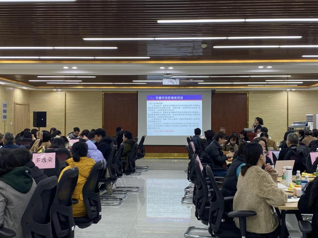 会议第二项,为进一步规范教学管理,提升教学管理人员工作水平,教务处分别对教学运行、学籍管理、实践教学等相关制度文件进行了详细的说明,希望全体教师及管理人员能够深入了解日常教学管理规范,并充分认识到规范管理的重要性。